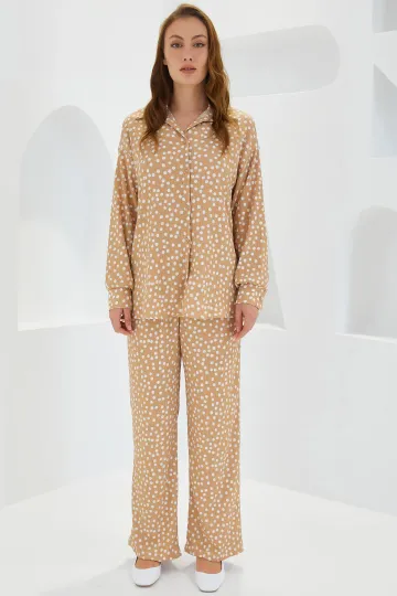 Kadın Puantiyeli Bej Ekru Örme İkili Takım 5858