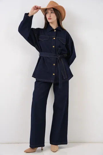 Kadın Ceket Pantolon Kot İkili Takım 30059 - Lacivert