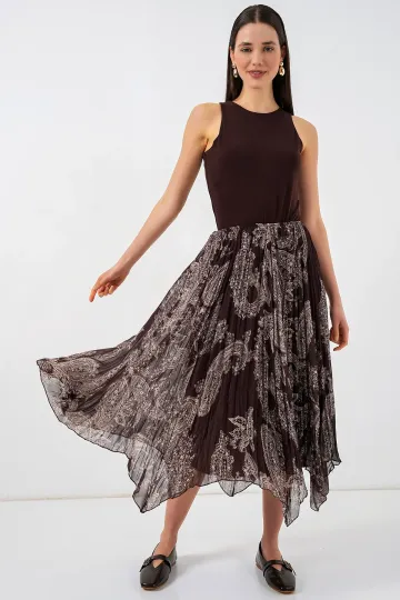 Kadın Asimetrik Tül Şifon Etek 8061 - Kahverengi