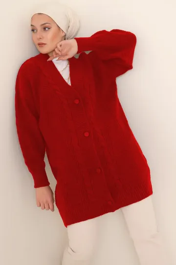 15768 Tesettür Triko Hırka - Kırmızı