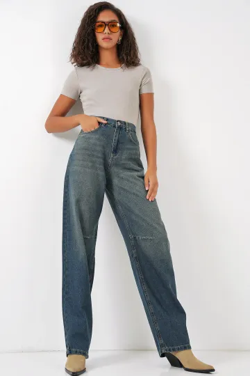 6689 Kadın Yüksek Bel Baggy Kot Pantolon - İndigo