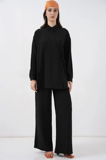 Kadın Bağcıklı Tunik Pantolon İkili Takım 6752 - Siyah