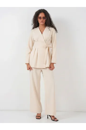 Kadın Kimono Pantolon Kumaş Takım 30054 - Bej