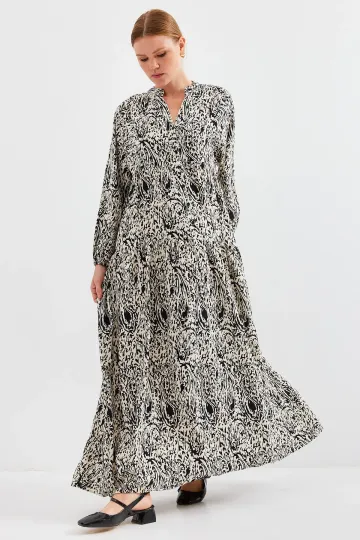 Kadın Desenli Siyah Viskon Tesettür Elbise 2423