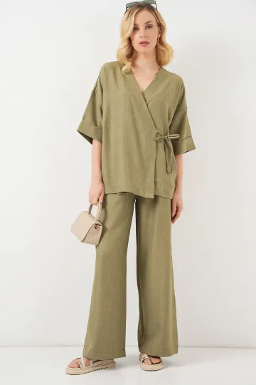 Kadın Önü Bağlamalı Alt Üst Takım 6745 - Çağla