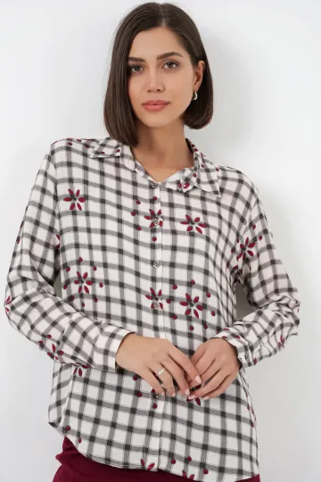 Kadın Desenli Oversize Viskon Gömlek 20371 - Siyah