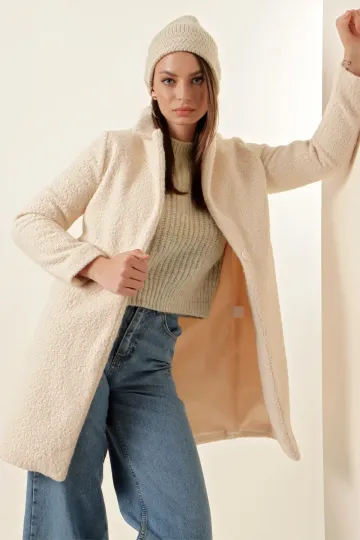 9082 Oversize Kaşe Kaban - Ekru