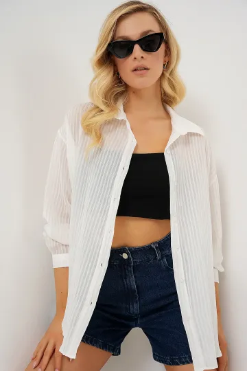 Kadın Uzun Oversize Gömlek 20320 - Beyaz