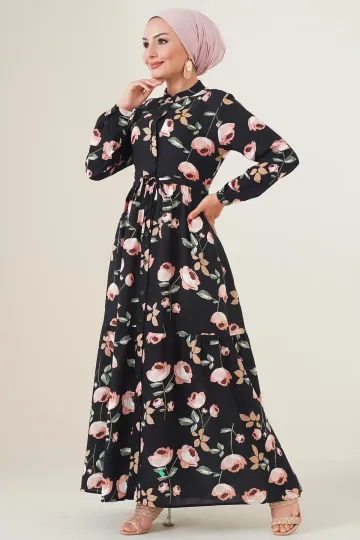 2144 Hakim Yaka Tesettür Elbise - E.Siyah