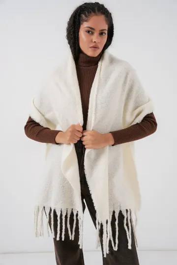 Kadın Yumuşak Dokulu Kalın Şal Atkı 15951 - Ekru