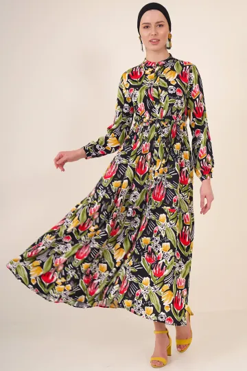 2144 Hakim Yaka Tesettür Elbise - Siyah