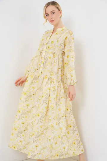 Kadın Desenli Tesettür Elbise 2583 - Sarı
