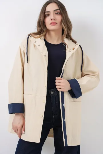 Kadın Teknik Kumaş Kapüşonlu Trençkot 5972 - Ekru