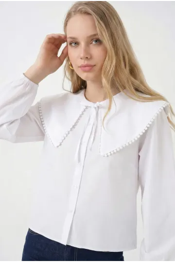 Kadın Beyaz Bebe Yaka Düğmeli Şık Günlük Gömlek HZL26S-BD1203141