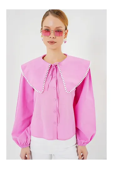Kadın Pembe Bebe Yaka Düğmeli Şık Günlük Gömlek HZL26S-BD1203141