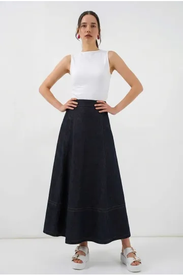 Kadın Lacivert Yüksel Bel Uzun Jean Etek HZL26W-BD180661