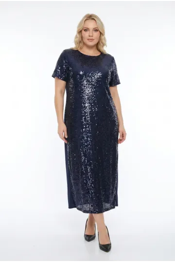 Kadın Lacivert Büyük Beden Payetli Uzun Abiye Elbise Şık Elbise HZL26S-PR11111