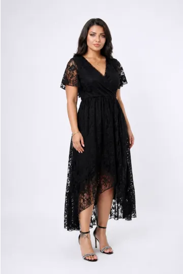 Kadın Siyah Büyük Beden V Yaka Astarlı Dantel Detaylı Şık Abiye Elbise HZL26S-PR11071