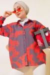 20179 Desenli Uzun Oversize Gömlek - Yeşil