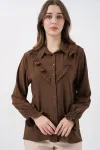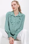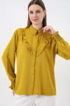20223 Fırfırlı Uzun Kol Gömlek - Hardal