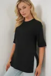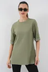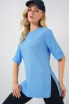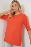 4332 Yanı Yırtmaçlı Örme Tişört - Fuşya