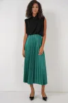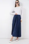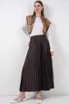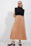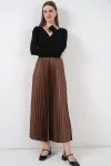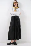 8009 Deri Görünümlü Piliseli Etek - Krem