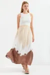 8025 Desenli Uzun Viskon Etek - Bej