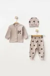 Aziz Bebe Kız Bebek % 100 Pamuk Zıbın Pantolon Bere 3 lü Alt Üst Bebek Takımı 0 Ay-6 Ay