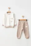 Erkek Bebek Ayı Nakışlı Sweatshirt Pantolon 2 li Alt Üst Bebek Takımı 3 Ay - 36 Ay