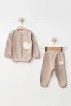 Erkek Bebek Ayı Nakışlı Sweatshirt Pantolon 2 li Alt Üst Bebek Takımı 3 Ay - 36 Ay