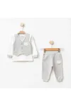 Erkek Bebek Ayı Nakışlı Sweatshirt Yelek Pantolon 3 lü Alt Üst Bebek Takımı 3 Ay - 36 Ay