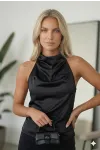 • Halter Yaka Saten Kumaş Sırt Dekolteli Bluz