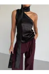 Kadın Beyaz Saten Şal Yaka Boyun Bağlamalı Asimetrik Bluz HZL26W-FRY123731