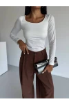 Kadın Beyaz U Yaka Uzun Kollu Sandy Bluz HZL25S-FRY122471