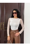 Kadın Beyaz Uzun Tül Kol Sandy Bluz HZL25W-FRY122521