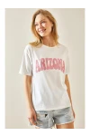 Kadın Beyaz Yeşil Arizona Baskılı Bisiklet Yaka T-Shirt HZL24S-DSB120261