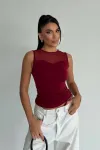 Kadın Bordo Kolsuz Likralı Tül Detay Sandy Bluz HZL26W-FRY123721