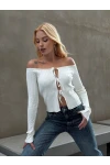 • Kadın  Önden Bağlamalı Madonna Yaka Crop Bluz