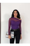 Kadın Bordo Tül Garnili Uzun Kol Şık Rahat Bluz HZL25W-FRY123541