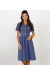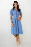 Kadın Denim Kısa Kollu Beli lastikli Yarım Düğmeli Göğüs Pensli Kot Elbise HZL22S-BD122101