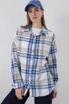 Kadin Ekose Desen Dügmeli Oversize Oduncu Gömlek