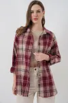 Kadın Ekose Desen Oversize Oduncu Gömlek 3854 Mor