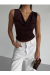 • Halter Yaka Sırtı Açık Sandy Bluz