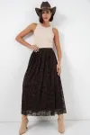 Kadın Flok Baskılı Astarlı Etek 8069 - Kahverengi