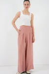 Kadın Geniş Paça Pileli Pantolon 6718 - Krem