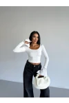 • Uzun Kollu Arkası Bağlamalı Fit Kesim Crop Bluz