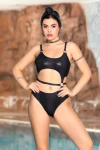 Kadın Gümüş Deri Görünümlü Halka Detaylı Yüzücü Mayokini HZL24S-AR1928