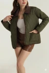 Kadın Haki Çıt Çıt Kapamalı Kadife Detaylı Kapitone Mont HZL25W-BD152261
