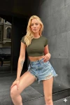 • Bisiklet Yaka Kısa Kollu Penye Crop T-Shirt