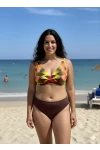 Kadın Kahverengi Çok Renkli Yüksel Bel Astarlı Büyük Beden Bikini Takımı HZL25S-LC22315